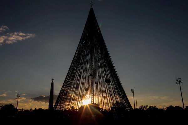 Cây Giáng sinh khổng lồ ở quảng trường Juan Pablo II ở Managua, Nicaragua.