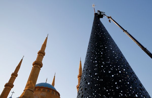 Cây thông Noel ở phía trước nhà thờ Hồi giáo Al-Amin ở Beirut, Lebanon.