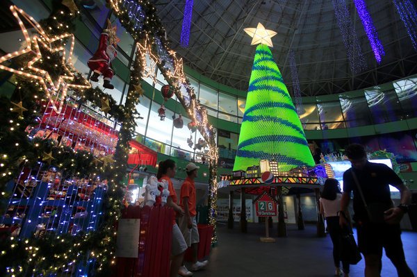 Cây thông Giáng sinh được làm từ 15.000 chai nhựa tái chế tại Công viên Đại dương Manila ở Manila, Philippines.