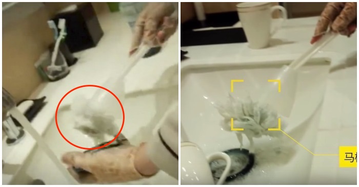 Old  Default Quá "đáng sợ" nhân viên khách sạn Trung Quốc dùng bàn chải cọ toa-lét rửa cốc chén