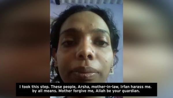 “Tôi đâu biết rằng, nó đi làm dâu mà phải chịu nhiều tủi khổ như vậy. Nhiều lần nó tâm sự và tỏ ra chán nản nhưng nghĩ mâu thuẫn trong chuyện vợ chồng, với gia đình chồng là thường tình nên không để ý, ai ngờ con gái tôi lại phải chịu uất ức đến mức tự tìm cách giải thoát như vậy", mẹ của nạn nhân Anjum Faizan đau buồn đứng trước di ảnh của đứa con gái xấu số.