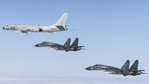 Oanh tạc cơ H-6K được hai chiến đấu cơ Su-30 hộ tống trong cuộc tập trận “bao vây“ đảo Đài Loan.
