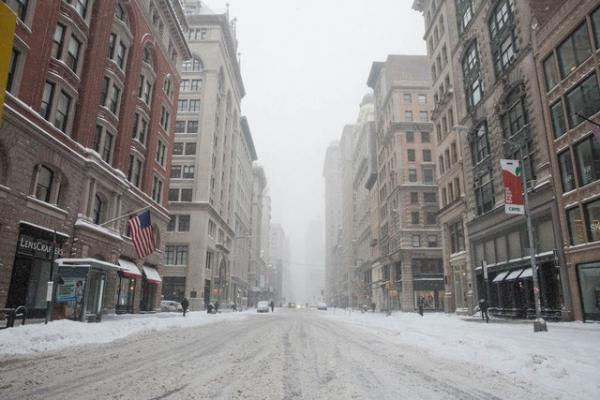 Bão mạnh, tuyết rơi dày cùng nhiệt độ âm khoác lên mình thành phố New York một tấm áo mới màu trắng lạnh giá. Thời tiết cực đoan khiến thành phố sầm uất, náo nhiệt trở nên hoang vắng khác thường.