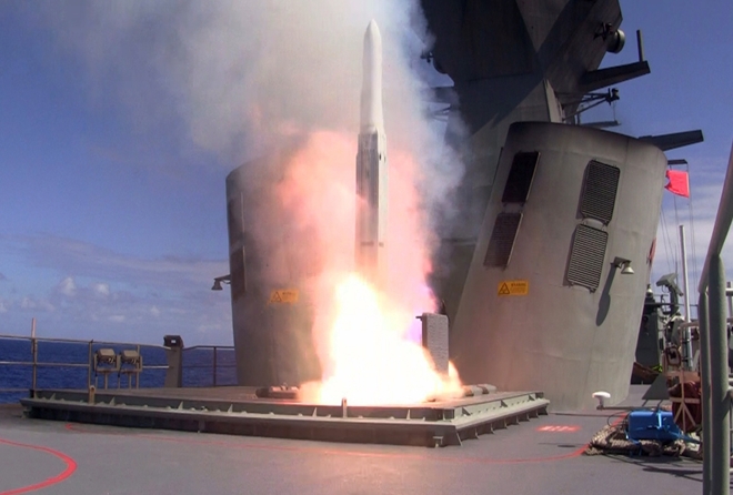Tên lửa ESSM Block II khai hỏa trên tàu chiến. Ảnh: CAND