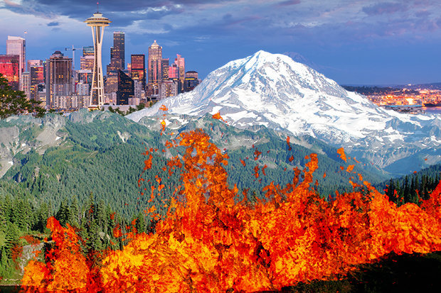 Rainier là tên ngọn núi cao nhất tại Washington. Hiện nay các chuyên gia cảnh báo các trận động đất liên tiếp có thể khiến núi lửa Rainier bị xáo trộn. Dự báo rằng hậu quả của nó sẽ rất thảm khốc.