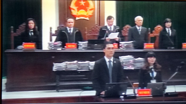 HĐXX công bố bản cáo trạng buộc tội bị cáo Đinh La Thăng và 21 thuộc cấp với hai tội danh "cố ý làm trái quy định của Nhà nước về quản lý kinh tế gây hậu quả nghiêm trọng" và "tham ô tài sản".