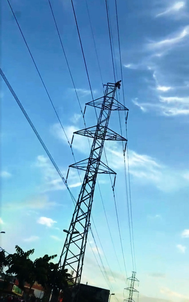Old  Default Thanh niên nhảy múa trên cột điện cao thế khiến giao thông ùn tắc