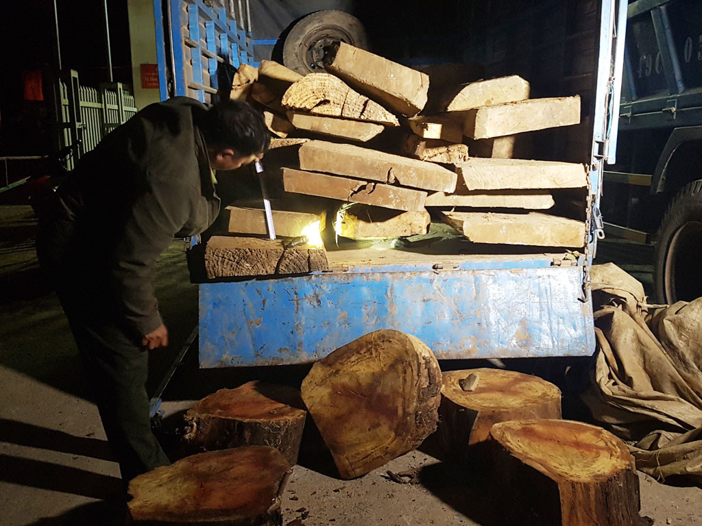Cơ quan chức năng kiểm đêm số gỗ lậu vừa bị bắt giữ