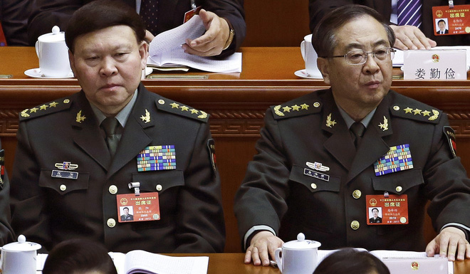 Trương Dương (trái) và Phòng Phong Huy, hai tướng lĩnh cấp cao của PLA đã bị "ngã ngựa" trong chiến dịch chống tham nhũng của ông Tập (Ảnh: AP)