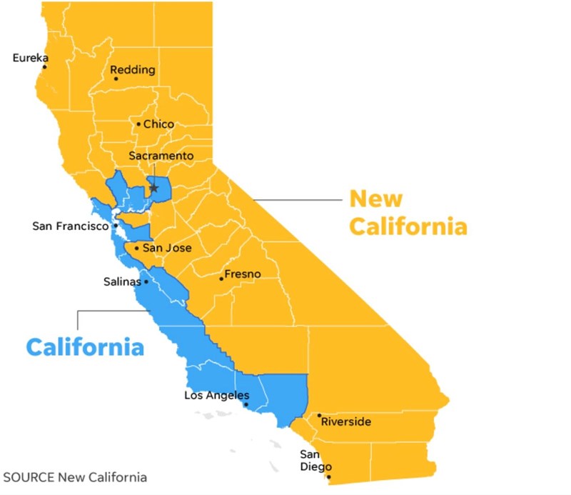 Đề xuất của nhóm sáng kiến là toàn bộ khu vực nông thôn của California hiện tại sẽ trở thành New California, trong khi các quận ở vùng đô thị ven biển vẫn sẽ thuộc về bang California như hiện tại.