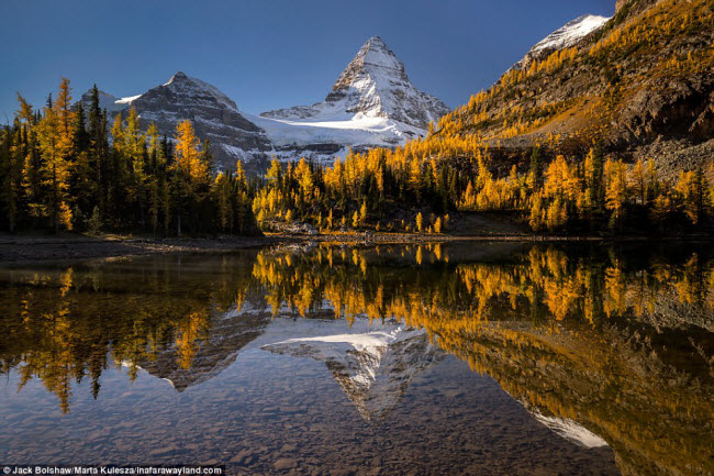 Đỉnh núi Assiniboine có hình như kim tự tháp ở ở British Columbia, Canada.