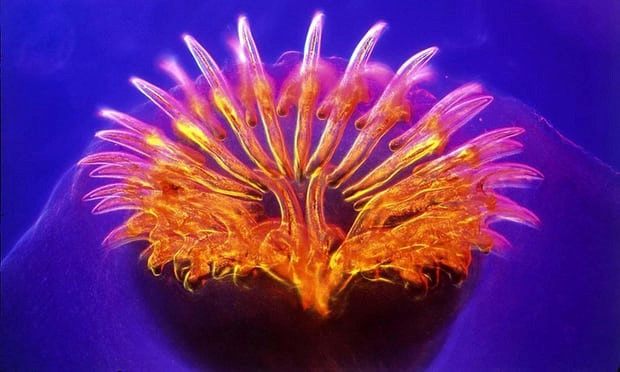 Đầu của một con sán dây. Ấu trùng sán có thể sống sót nếu thức ăn không được nấu chín. Ảnh: PA.