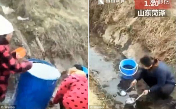 Old  Default Người dân Trung Quốc đua nhau xuống mương bẩn vớt dầu hôi của