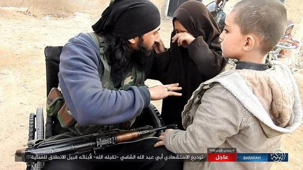 Do quân số suy giảm nghiêm trọng, IS vốn đã buộc phải sử dụng cả các chiến binh khuyết tật. Mới đây, chúng tung ảnh một chiến binh cụt chân, ngồi trên xe lăn nói lời tạm biệt con cái trước khi bị khiêng vào xe bom để thực hiện một vụ tấn công tự sát.