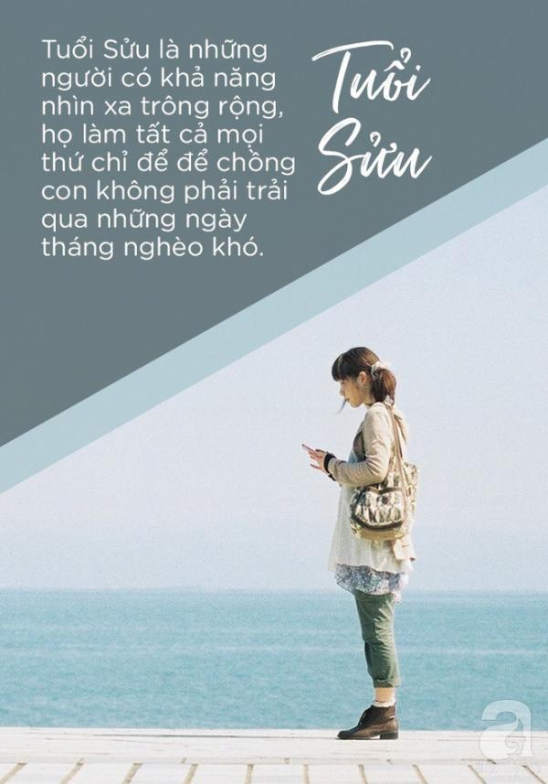 Nhiều người cho rằng phụ nữ tuổi Sửu lại lam lũ và vất vả hơn, bởi lẽ họ sinh ra vốn đã có tinh thần làm việc chăm chỉ, siêng năng, dù trời có sập xuống, tuổi Sửu vẫn cày lưng làm việc hằng ngày với mong muốn đạt được những điều tốt đẹp nhất trong cuộc sống. Tuy nhiên trên thực tế, tuổi Sửu là những người có khả năng nhìn xa trông rộng, họ làm tất cả mọi thứ chỉ để tạo dựng một cơ ngơi vững chắc sau này, để chồng con không phải trải qua những ngày tháng nghèo khó. Phụ nữ tuổi Sửu vốn hiền lành và đôn hậu, vì vậy họ được hưởng phước lành trời ban, chồng nào cưới được vợ tuổi Sửu, cùng họ gầy dựng gia đình thì sẽ tạo ra được khối tài sản khổng lồ. Bên cạnh đó, phụ nữ tuổi Sửu vốn đơn giản, họ không quá yêu cầu hoặc đòi hỏi gì ở người chòng, họ chỉ cần đối phương luôn bên cạnh và cùng họ trải qua mọi sóng gió khó khăn là đủ. Tuổi Sửu cũng là một trong những con giáp có mệnh vượng phu, vì vậy, sau khi kết hôn sẽ cùng chồng tạo ra một cuộc hôn nhân hạnh phúc viên mãn và đủ đầy.
