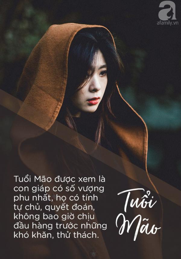 Trong số 12 con giáp, tuổi Mão được xem là con giáp có số vượng phu nhất, không những sở hữu tính cách phóng khoáng và giàu tình cảm, tuổi Mão còn có tính tự chủ, quyết đoán, không bao giờ chịu đầu hàng trước những khó khăn, thử thách. Nhờ vậy mà đa số phụ nữ tuổi Mão đều đạt được nhiều thành công khi tuổi đời còn trẻ. Tuy nhiên, không vì vậy mà họ trở nên tự mãn, dựa dẫm, ỷ lại, ngược lại họ ngày càng khiêm tốn, biết nỗ lực cố gắng nên không bao giờ phải chịu cảnh vất vả. Đường tình duyên của tuổi Mão khá gian truân, nhưng khi họ thật sự tìm được ý trung nhân thì đó là một cuộc hôn nhân viên mãn khiến nhiều người ghen tị. Không những thế, phụ nữ tuổi Mão còn chiếm trọn tình cảm của gia đình nhà chồng. Có thể nói, đối với họ cưới được con dâu tuổi Mão như đào được kho báu, không những cả nhà được hạnh phúc ấm no, và vợ chồng tuổi Mão cũng ngày càng thành công viên mãn.