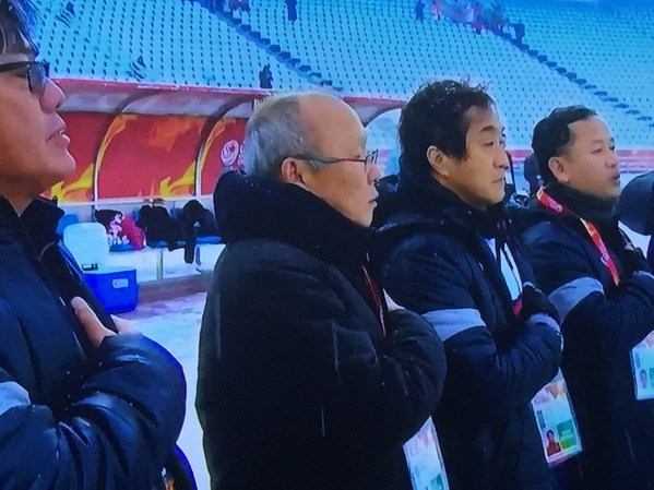 Bàn thắng gỡ hòa của Quang Hải khiến các khán đài sân Thường Châu như nổ tung bởi hàng nghìn CĐV Việt Nam. Tinh thần của các học trò HLV Park Hang Seo lên cao.