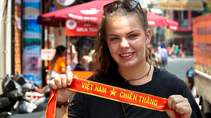 Ana đến từ Australia cho biết, cô rất háo hức để xem trận đấu này. “Tôi đã chứng kiến cảnh người Việt ăn mừng chiến thắng vừa rồi và quyết định ở lại đây thêm vài ngày để tham gia cùng”, nữ du khách chia sẻ.