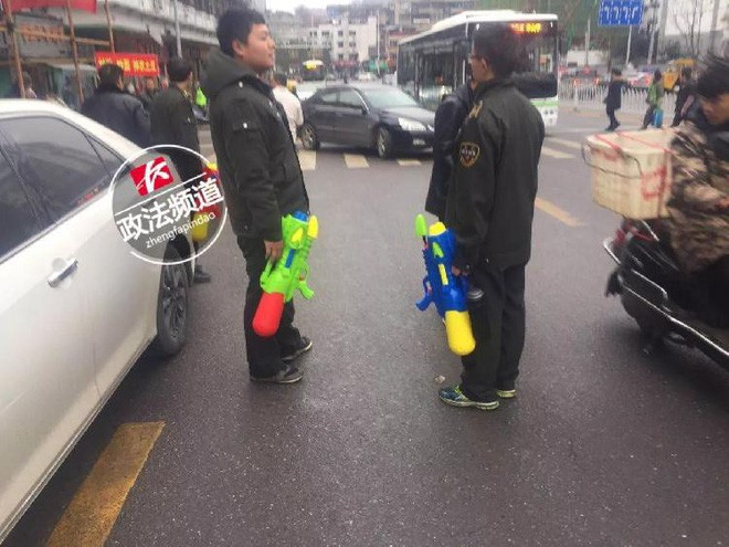 Mới đây, các nhân viên quản lý đô thị ở Hồ Nam, Trường Sa đã được trang bị súng phun nước 'Super Soaker' để dập tắt các loại bếp than trái phép, chủ yếu được sử dụng bởi những người bán hàng rong trên đường phố