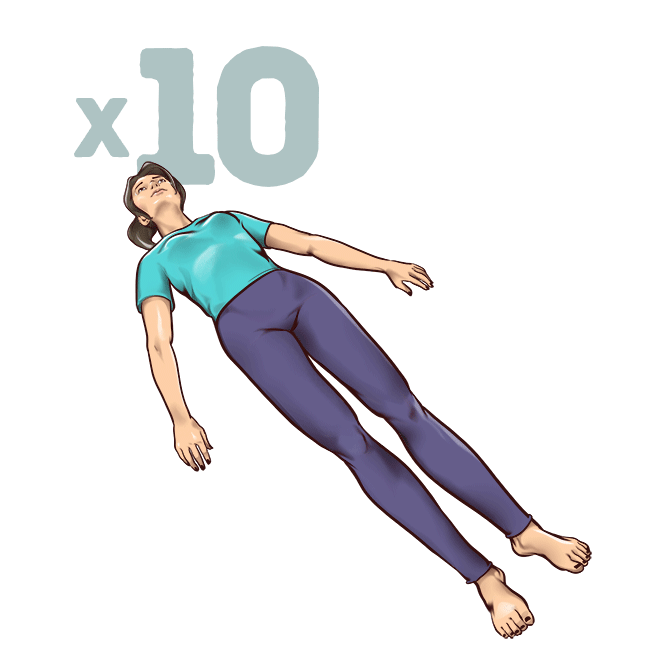 Hít vào và hạ đầu xuống. Lặp lại động tác này liên tục 10 lần.