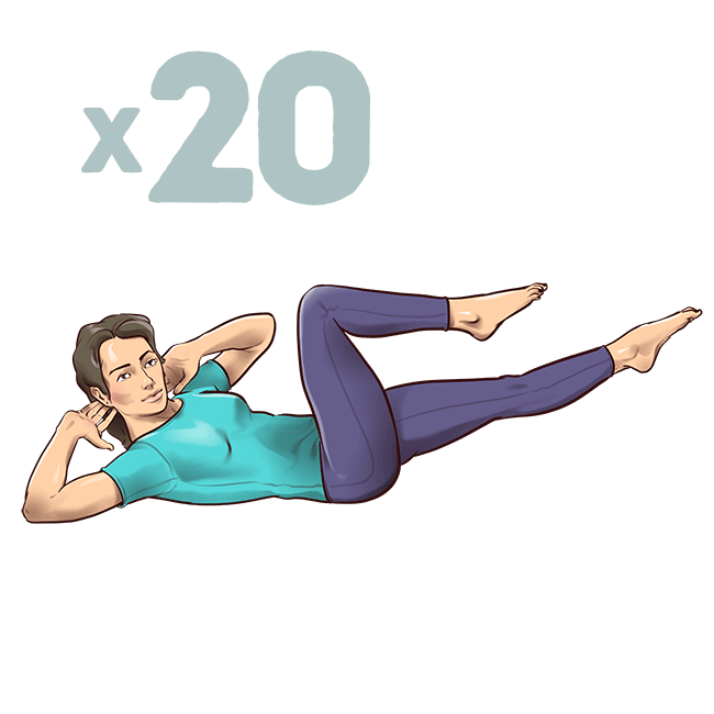 Thực hiện động tác gập gối giống như đạp xe trên không liên tục 10 lần. Lưu ý, lưng và đầu không nhấc khỏi mặt đất và động tác thực hiện chậm để có hiệu quả tốt nhất.