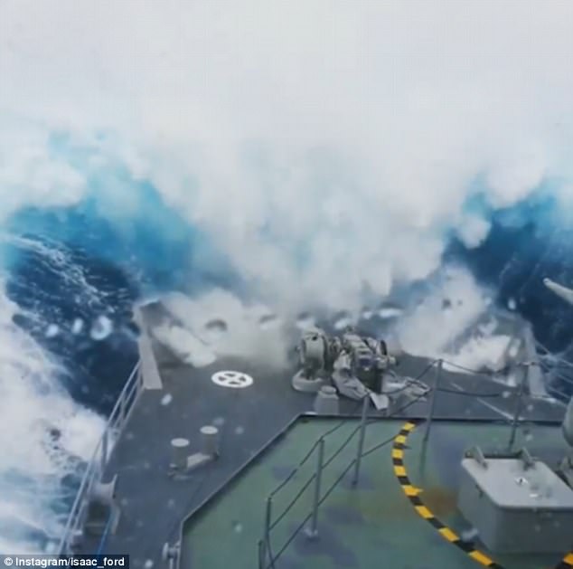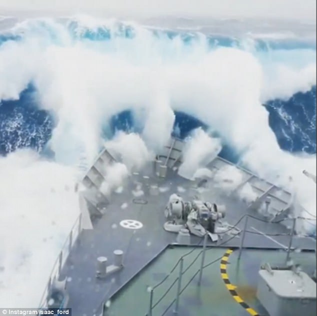 Một con sóng dữ cao tới hơn 10 mét, bằng một tòa nhà 3 tầng, đã bất ngờ sụp xuống con tàu. Tờ Daily Mail ví tàu chiến từ tàu mặt nước bỗng biến thành tàu ngầm khi toàn bộ nước phủ kín khắp nơi.