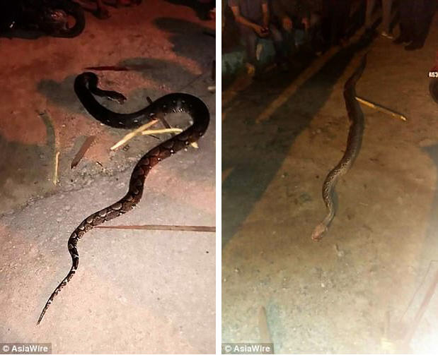 Khám nghiệm hiện trường, cảnh sát cho biết anh Kosnan đã ngã khỏi xe máy sau khi bị con trăn siết chặt cổ.