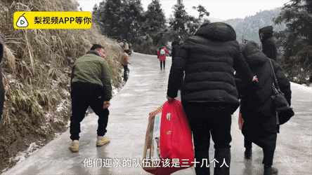 Cụ thể, do cả nhà cô dâu lẫn chú rể đều ở trên núi, nơi có đường đi rất dốc. Việc di chuyển càng trở nên khó khăn hơn khi những tuyến đường đều bị băng phủ kín, xe ôtô cũng không thể đi được. Vì vậy, đoàn đưa dâu gồm khoảng 30 người đã quyết định xuống xe để đi bộ.