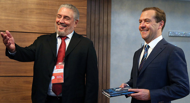 Ông Castro Diaz-Balart dự hội nghị khoa học ở Moscow cùng Thủ tướng Nga Dmitry Medvedev (Ảnh: Sputnik)