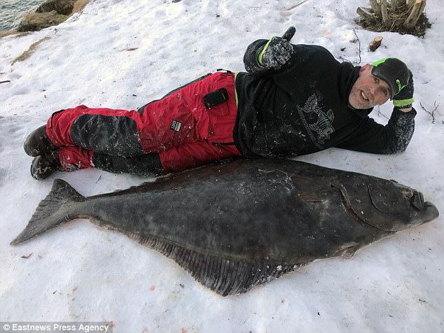 Theo báo Anh Daily Mail, thợ mộc David Wood-Brignall mới đây câu được con cá bơn khổng lồ trong chuyến đi đến Bodo, Na Uy.