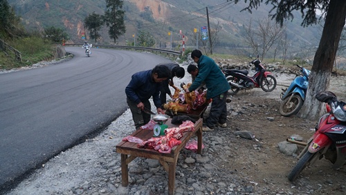 Trâu, nghé chết rét trong 2 đợt rét khủng khiếp đầu năm 2018, người chăn nuôi bấm bụng làm thịt bày bán la liệt dọc quốc lộ 4D từ đèo Ô Quý Hồ qua thị trấn Sa Pa xuống TP. Lào Cai. Ảnh: Báo Lào Cai.