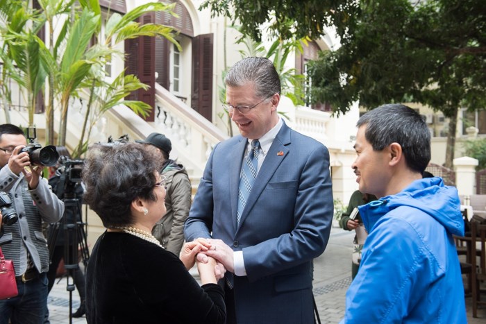 Đây là lần đầu tiên Đại sứ Hoa Kỳ gói bánh chưng và ông tỏ ra khá hào hứng với công việc này.