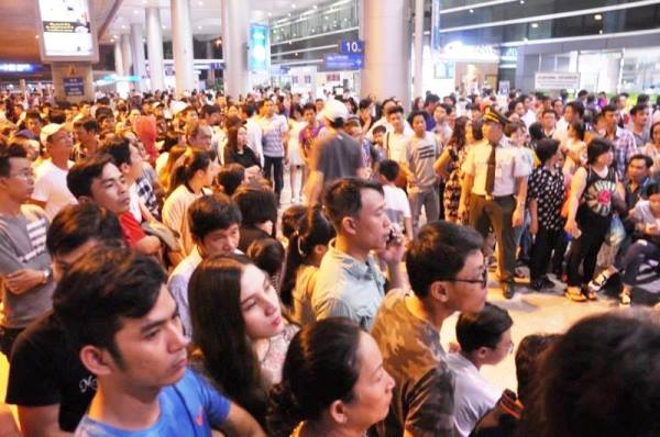 Hàng ngày người chen lấn nhau từng ô gạch để có chỗ đứng, những người già và trẻ nhỏ không đủ sức "lấn chiếm" thì đành phải nằm, ngồi vật vờ ở sảnh vì các băng ghế cũng chật kín người ngồi. Mặc dù đông như vậy, nhưng có những gia đình còn đưa cả chục người đến sân bay chỉ để đón một người về.