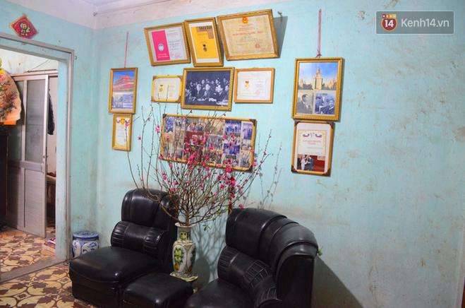 Căn phòng nhỏ của ông Hiền nằm ở tầng 3 của khu tập thể, phòng cũng đã xuống cấp theo thời gian. Nhẹ nhàng rót nước pha ấm trà nóng, vị phó giáo sư già chia sẻ, ông sống ở ngôi nhà này từ năm 1983, đây là nhà được nhà nước cấp.