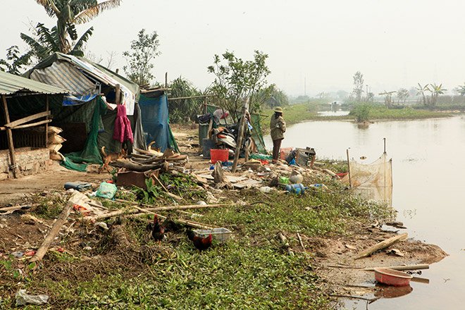 “Tết năm 1992 khổ lắm, lúc ấy vợ chồng, con cái lang thang vạ vật ở ngoài đường, nói thật cái chuồng trâu, chuồng bò bây giờ còn tốt hơn cái túp lều nhà mình ở đê. Túp lều ngoài đê cắm bởi 4 cái cọc, chát đất. Sinh cháu thứ hai lúc đó gió bão đung đưa, nếu mà đổ lều phải bế con chạy trước”, chị Hải tâm sự.