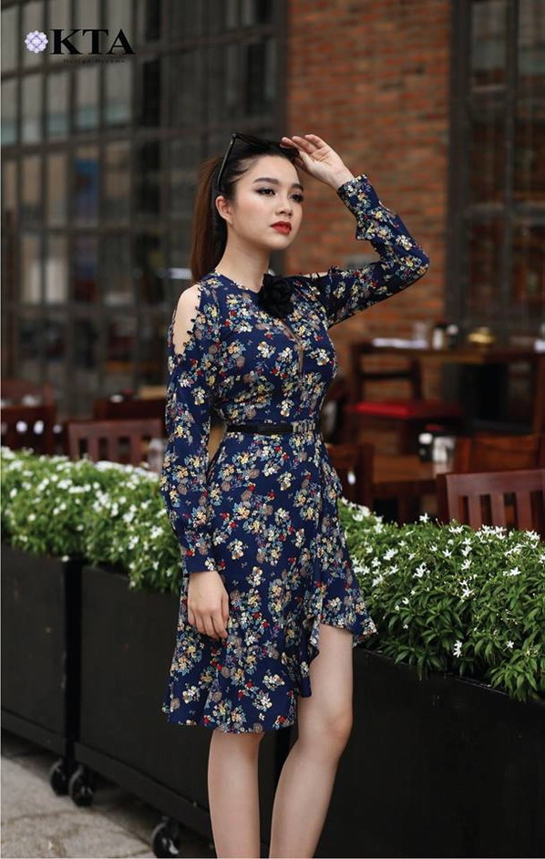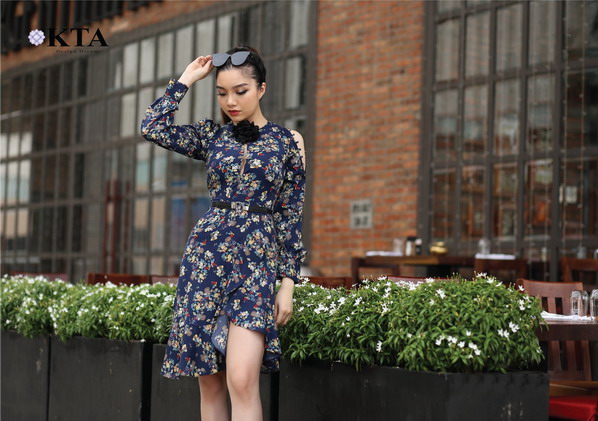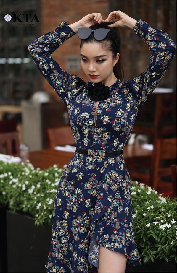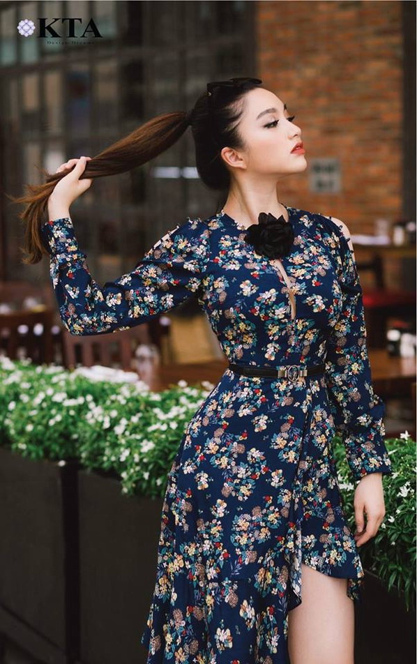 Diễn viên Võ Trinh đẹp rực rỡ trong mẫu thiết kế đầm Lụa Hoa nhí. Đầm với chất vải lụa mềm mại, các đường cắt cúp khéo léo, tôn lên đường cong, nét quyến rũ và sự nữ tính của phái đẹp.