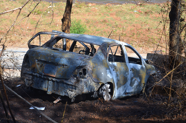 Xe taxi bị thiêu cháy còn trơ khung.