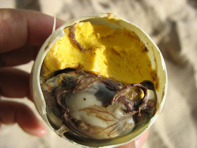 Trứng vịt lộn từng được mệnh danh là một trong những món ăn "kinh dị" bậc nhất Việt Nam. Đã có không ít người nước ngoài phải bỏ chạy trước món trứng này. Vì sao ư? Hãy thử nghĩ mà xem, một món ăn với con vịt non còn nguyên các bộ phận không phải rất đáng để chạy xa hay sao?
