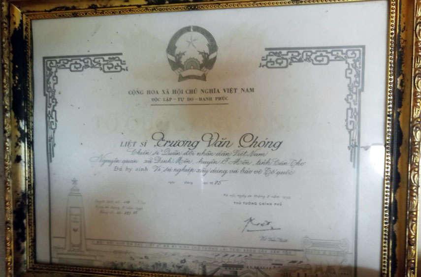 Ông Chóng được cho là đã hy sinh năm 1985 và được công nhận liệt sĩ năm 1993.