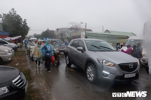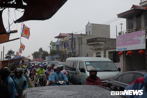 Vào buổi chiều mùng 7 tháng giêng (tức 22/2) , trời bắt đầu trở lạnh, mưa rất to nhưng hàng ngàn người vẫn ùn ùn đổ về chợ Viềng - Phủ Dầy.