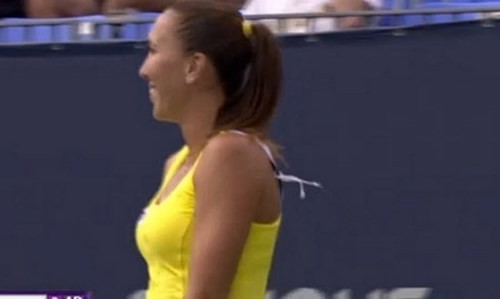Ngôi sao quần vợt Jelena Jankovic cũng bị đứt dây áo trong trong trận đấu tại Rogers Cup, tháng 8/2014.