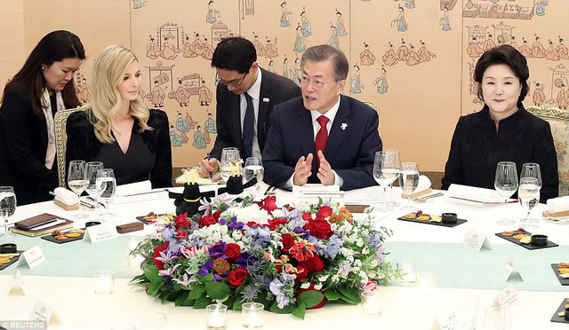 Ivanka Trump, con gái Tổng thống Donald Trump đồng thời là cố vấn cấp cao của Nhà Trắng, ngày 23/2 đã dẫn đầu phái đoàn Mỹ tới Hàn Quốc trong chuyến thăm nhân dịp bế mạc Thế vận hội mùa Đông. Tổng thống Moon Jae-in đã chủ trì bữa tiệc tối để đón tiếp Ivanka Trump tại Nhà Xanh - Phủ Tổng thống Hàn Quốc với thực đơn được chuẩn bị đặc biệt cho ái nữ của nhà lãnh đạo Mỹ.