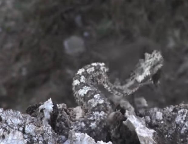 Để bắt được con mồi, rắn đã phải bỏ ra rất nhiều công sức. Nó ngụy trang thành những tảng đá xung quanh và chờ con mồi vào bẫy. Màn bắt mồi cực nguy hiểm và nhanh chóng khiến người xem nghẹt thở.