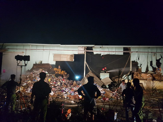 Bên trong nhà máy, khói vẫn bốc lên nghi ngút.
