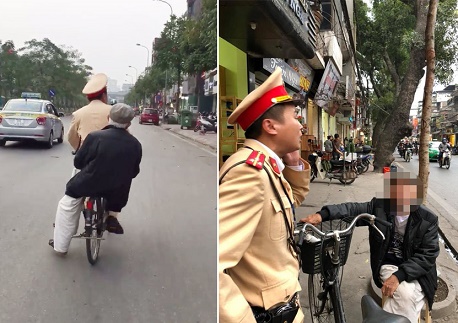 Old  Default Dân mạng bất ngờ khi 1 cảnh sát giao thông đạp xe đạp chở 1 cụ già