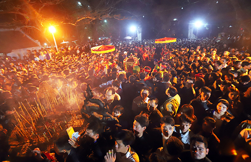 Dòng người ken đặc ở đền Trần lúc nửa đêm.