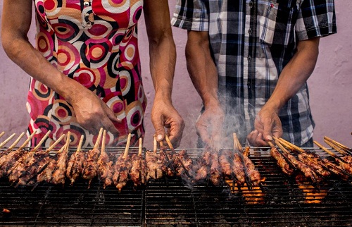 Một người phụ nữ nướng thịt cho khách tại quán ăn. Ảnh: Justin Mott.