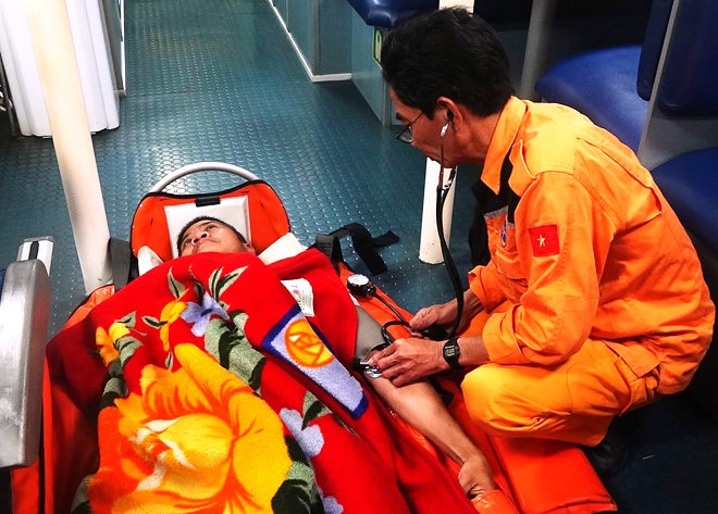 ĐÀ NẴNG - Ông Guerrero Rosmeni Nedia, 48 tuổi, quốc tịch Phi Luật Tân, được tàu cứu nạn của Việt Nam đưa lên bờ, kịp thời chuyển lên bệnh viện chữa trị.