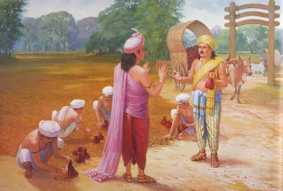 Đúng lúc ấy, từ bên kia cầu, một người đàn ông cưỡi ngựa đi sang bên này. Nhìn bộ dạng và cách ăn mặc “hợp thời” của người này, có thể thấy ông ta là người giàu có. Bỗng nhiên ông ta dừng lại trên cầu để đi vệ sinh và nhìn thấy đồng tiền vàng lấp lánh trên cầu. Ông nhìn bốn bên vắng lặng rồi nhặt đồng tiền vàng lên và ngồi chờ nửa ngày xem có ai đến nhận không. Kết quả, ông ta chờ nửa ngày mà vẫn không có ai qua cầu. Trời bắt đầu tối, ông ta cầm đồng tiền vàng và lên ngựa cưỡi đi.