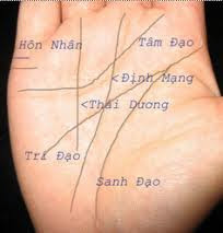 Theo xem tướng học thì đường định mệnh là đường thẳng xuyên qua chính giữa bàn tay. Đường này bắt đầu từ cuối lòng bàn tay, gần cổ tay và chạy theo lòng bàn tay lên phần gốc các ngón tay. Đường định mệnh liên quan đến sự nghiệp, công việc, tham vọng và định hướng cuộc đờì, nó cũng chỉ ra niềm tin và những khả năng của họ.